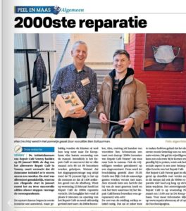 Vorige maand mochten wij onze 2000e reparatie verrichten in de Kemphaan. Dit werd uiteraard feestelijk gevierd, voor wie het gemist heeft, zie hieronder het krantenartikel dat naar aanleiding van dit heuglijke feit geplaatst werd.